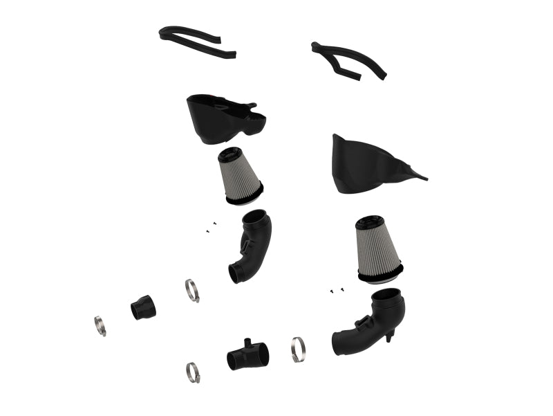 These 360-degree radial flow air filters feature our oil-free Pro DRY S media with three layers of synthetic media for maximum convenience. Their progressive layering provides great filtration efficiency and dust holding capacity, while not requiring the use of oils. This media is best suited for street use. Their inverted top makes for more filter surface area, resulting in longer service intervals. The included performance air filters are surrounded by open-element XLPE polymer (cross-linked polyethylene) housings that minimize warm engine air for maximum performance. The open design allows for easy viewing of the air filters and delivers an aggressive Air Intake sound. They utilize the vehicle's OE air inlets with no additional hardware. This system features high quality, computer-designed, dyno-tuned intake tubes to achieve maximum power gains while maintaining a perfect fit. Their XLPE material is heat soak resistant and extremely durable. The computer designed system utilizes factory mounting locations, minimizing the use of unnecessary hardware and ensuring a perfect fit every time. Its innovative design makes for a hassle-free, direct bolt-on installation process that requires no cutting or drilling. It features our patent pending filter-to-housing interface that uses half the number of parts of a traditional cold air intake system.