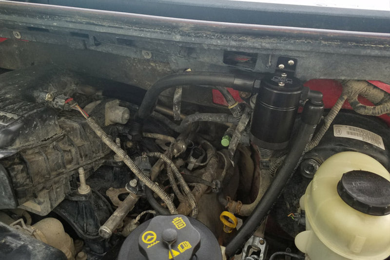 During the process of venting crankcase pressure back through your intake track, large amounts of oil, in the form of vapors can gather/accumulate in your intake tube, intake manifold runners and even dilute your gas, lowering its octane level. This happens on all engines and is even worse with forced inducted vehicles (supercharged and turbocharged) as crankcase pressures are increased. To combat this, we have developed an oil separator of our own design. Milled from solid billet aluminum this is a rock-solid piece. It has a knurled tank base for easy removal to drain the spent oil and an O-ring seal to prevent any leaks. Filtering consists of a fine mesh stainless steel screen that traps fine oil vapors and releases them once heavy enough to fall. They then pass through a 1/2" thick 1/16th" aluminum honeycomb filter where they grow every larger and then fall into the bottom. By the time the oil gets through the filter it's too heavy to be passed on into the intake. The tank holds 3 oz of fluid, while that may not sound like a lot, you shouldn’t see that much oil in your PCV system. Drain it every 2000-3000 miles and you will never come close to filling it.