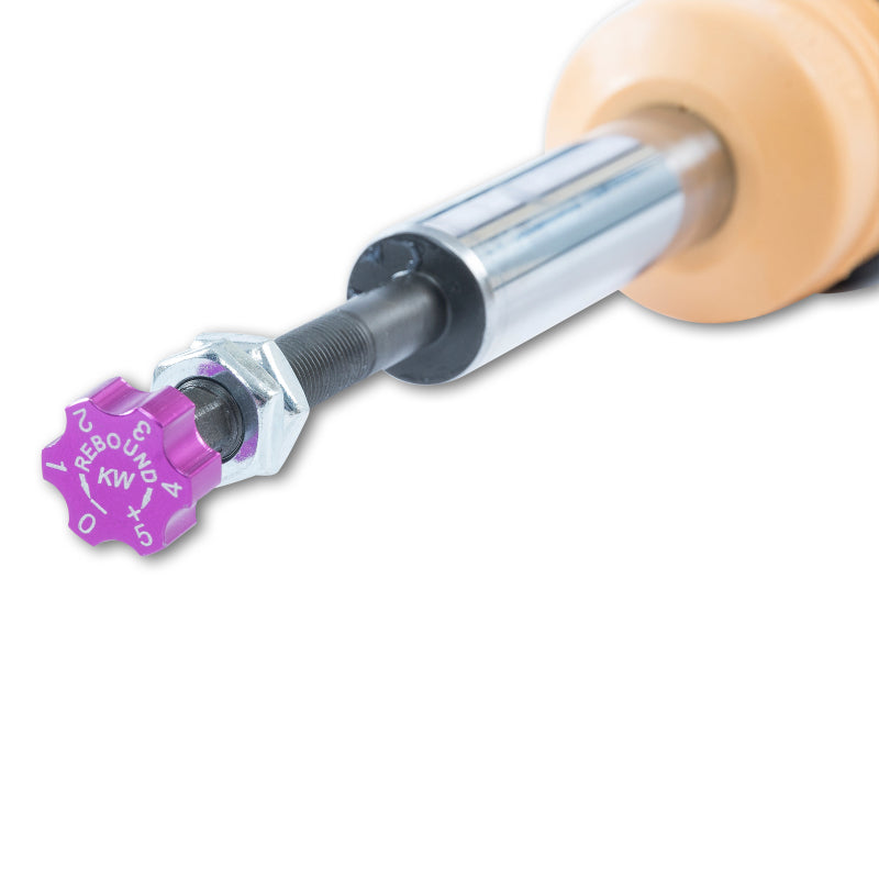 Designed to maximize the performance on vehicles with DOT-R and other ultra high-performance tire setups. KW V3 Clubsport coilovers are the ideal choice for double-duty street cars, use at HPDE's(high performance drivers education), time attack or time trials, and club level racing. The Clubsport setup was specially designed on the Nordschleife and the continuous adjustable ride height allows for fine corner weight or making setup changes. The TVR-A and TVC-A valve technology -provide an unmatched level of separately adjustable damping for the rebound and compression enabling a customized set up appropriate for the vehicle's modifications such as weight, tire characteristics, and other various conditions. The KW V3 Clubsport INOX-LINE coilover kit is the ideal tool for performance-oriented drivers and experienced tuning enthusiasts who place a strong emphasis on the overall performance of their suspension. The KW V3 Clubsport features patented TVR-A and TVC-A technology -hat provides separately adjustable rebound and compression damping. The extensive Adjustment -angle of the independently configurable rebound and compression make it easy to directly influence the steering behavior, directional stability, grip and handling characteristics for confident and repeatable results at the limit of driving dynamics.