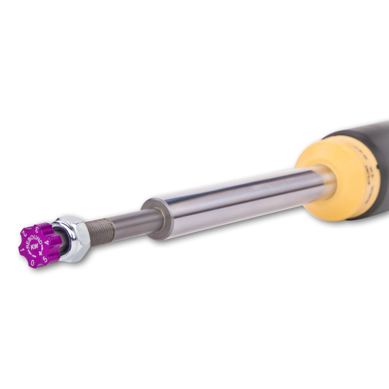 Is your factory sport suspension too firm? Do you want a sporty look and driving dynamics without having to compromise comfort? KW V2 comfort coilovers take the already stellar ride and reputation of KW suspensions coilover systems to the next level of comfort. Designed specifically to maximize comfort KW V2 Comfort coilovers provide a subtle lowering with adjustable ride height and rebound damping adjustability allowing the handling or the comfort to be individually tailored as desired via the integrated rebound adjustment knobs. KW V2 Comfort coilovers offer the perfect compromise of driving dynamics and ride comfort. With the KW V2 Comfort coilover kit, your comfort-oriented driving pleasure is the focus. That's why our test engineers evaluate the setups on numerous highways and country roads with various road surface types. The KW V2 Comfort coilover kits are suitable for all drivers who want to combine the joy of a decent lowering with driving comfort. With the 16-click adjustable rebound damping (TVR-A-technology), you can tune the KW dampers on the KW V2 Comfort coilover kits to make it more comfortable or sportier. The two-stage, patented TVR-A (Twin Valve Rebound - Adjustable) technology enables a small volume of oil to flow through an adjustable, conically shaped, low-speed bypass during low damper speeds, while in the case of higher damper speeds, the main rebound stage valve opens allowing a larger volume of oil to flow. This provides a big improvement in terms of ride comfort without influencing the safety-relevant high-speed range. There are 16 precise clicks available for individual settings, so you can choose between more comfort or more body control. The KW V2 Comfort coilovers, made using INOX-LINE stainless steel technology, enables a vehicle-specific lowering within the tested adjustment range of 10 to 40 mm.