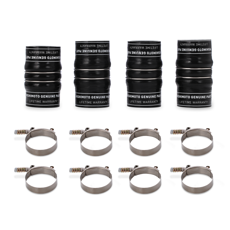 "Mishimoto is proud to release a direct-fit silicone boot kit for your Nissan Titan XD. With Duracore technology, this boot kit is the perfect upgrade in performance and reliability for your 5.0L Cummins. Mishimoto DuraCore technology is the synthetic material that comprises the innermost layer of all Mishimoto silicone diesel boots. Compared to normal silicone, DuraCore in our Titan XD performance boots provides superior resistance to heat, pressure, fuel, and oil. This effectively increases the life of our Titan XD performance boots by preventing leaks and blowouts. The Mishimoto Titan XD performance boot kit retains factory fitment for ease of installation, and fits with both stock and Mishimoto Intercooler Piping. To add even more reliability, this kit includes Mishimoto constant-tension T-bolt clamps for accurate and consistent holding power. As with all Mishimoto Titan XD performance parts, this boot kit is protected by our signature Mishimoto Lifetime Warranty."